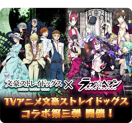 ラヴヘブン Tvアニメ 文豪ストレイドッグス とのコラボ第3弾ガチャ イベント情報公開 フランシス F や黒の時代編 Sr太宰治と中原中也 が登場 Boom App Games